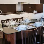 This 90 m^2 apartment comes with tea and coffee-making facilities and a mini-kitchen featuring a refrigerator, an oven, and kitchenware.